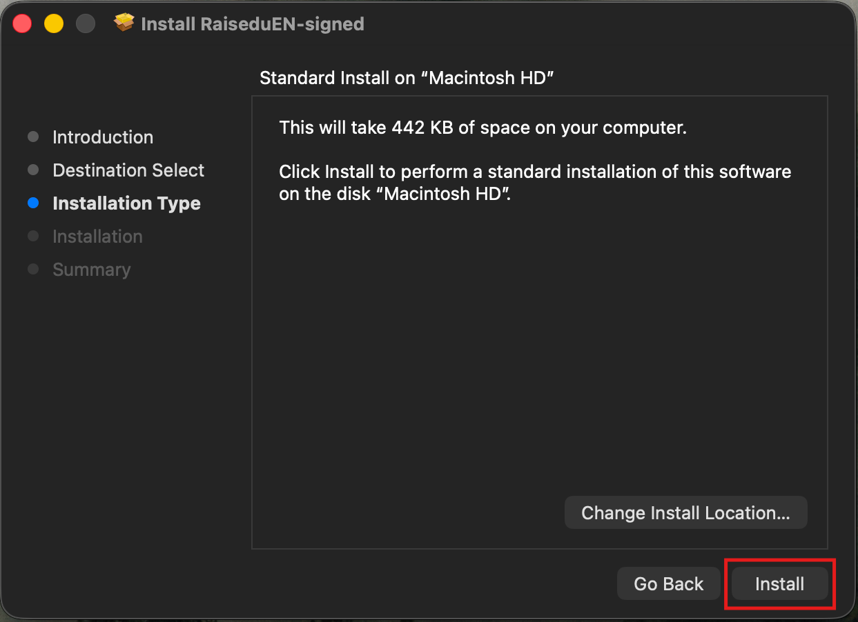 5. Next click “Install”. Important: DO NOT change the install location!