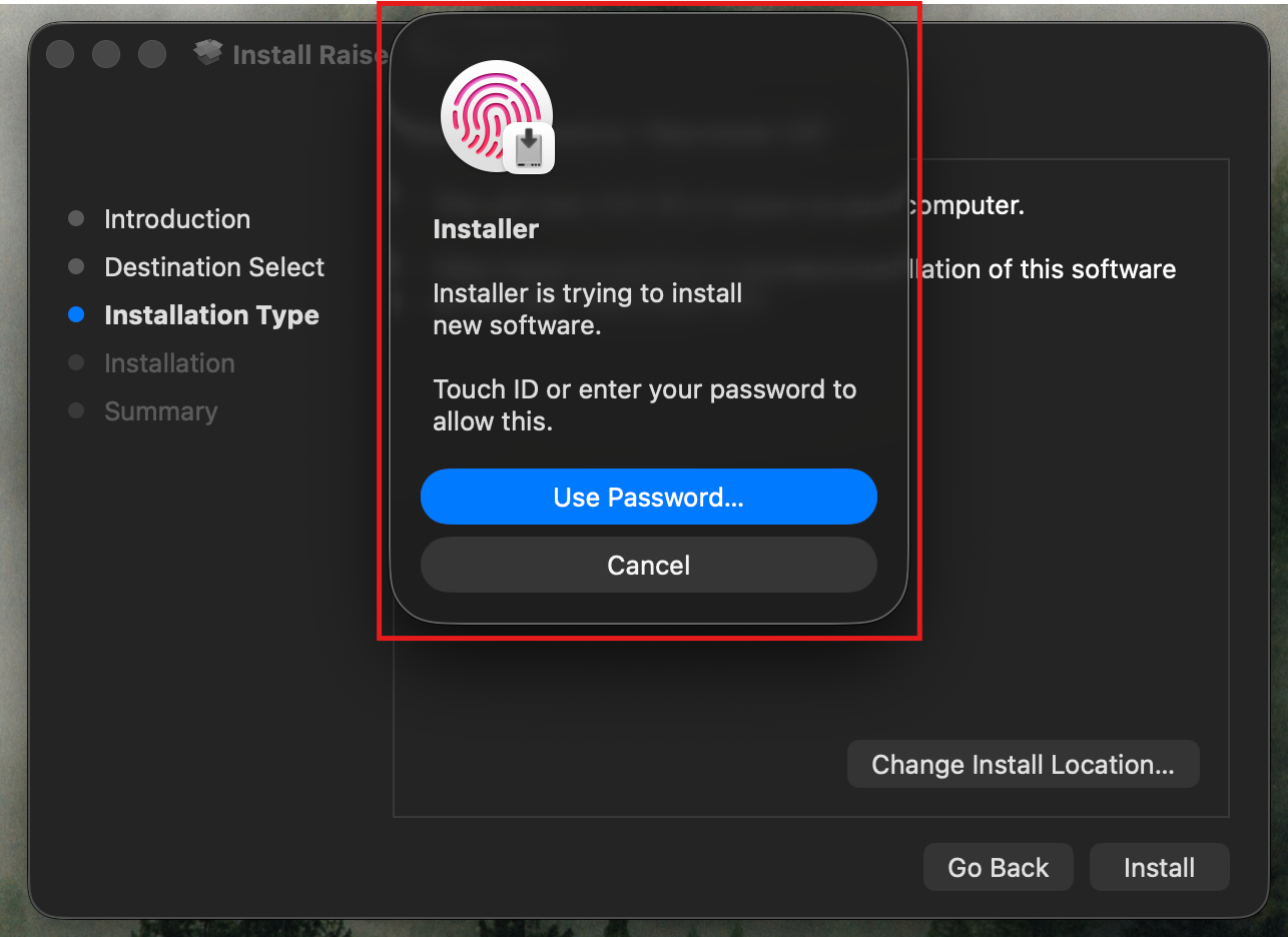 6. Enter your Touch ID or Password to allow the installation.