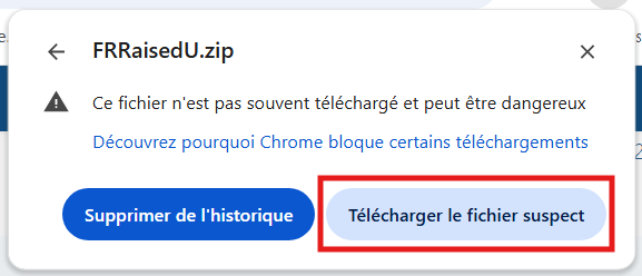 À ce stade, selon votre navigateur, un message vous avertissant que le téléchargement a été bloqué pour des raisons de sécurité peut s’afficher. Si c’est le cas, cliquez simplement sur l’avertissement qui s’affiche (ou sur l’icône de téléchargement), puis cliquez sur « Télécharger le fichier suspect »/« Télécharger quand même ».