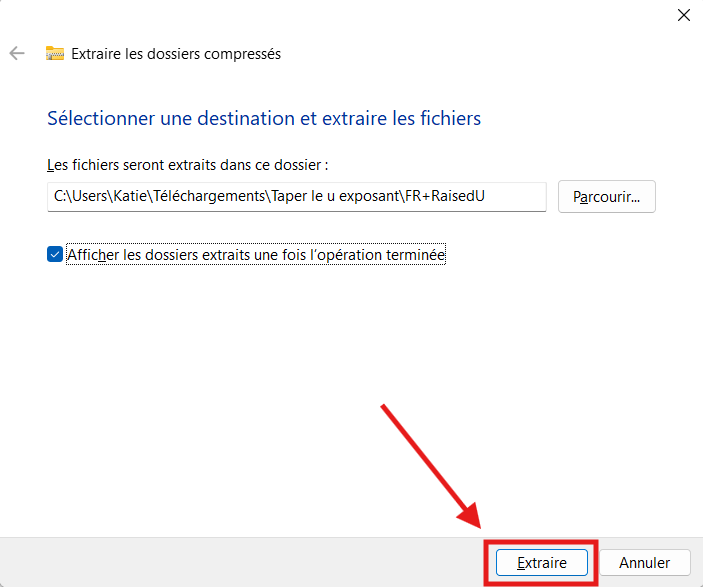 Puis confirmez en cliquant sur « Extraire ».