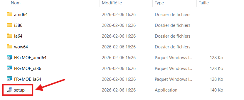 Ouvrez le dossier décompressé et double-cliquez sur le fichier « setup.exe ».