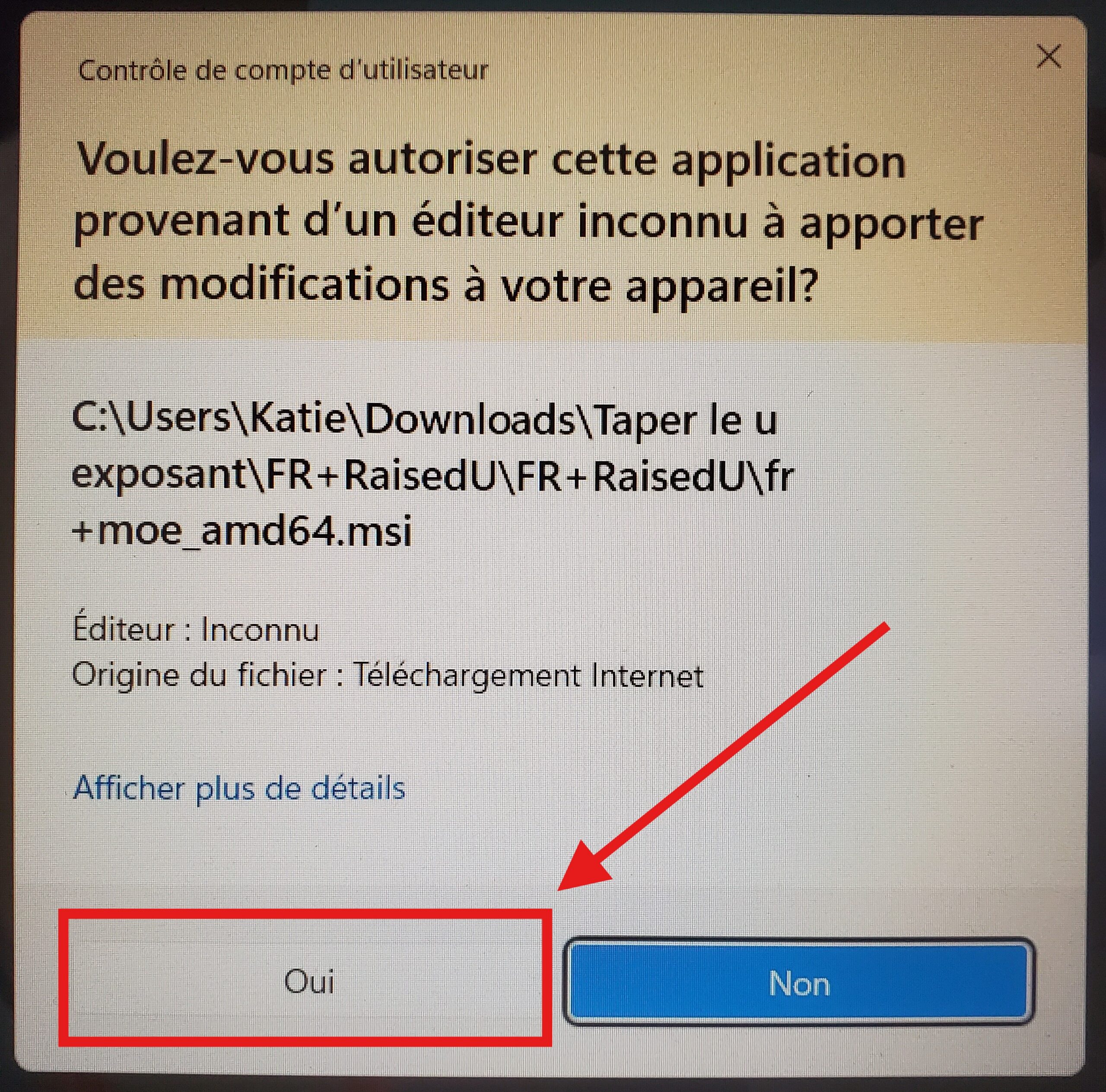 Cliquez ensuite sur « Oui » dans la fenêtre qui s’ouvre…