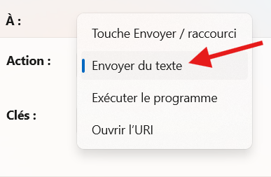 Ensuite, dans la section « À », cliquez sur le menu déroulant à côté de « Action » et sélectionnez « Envoyer du texte ».